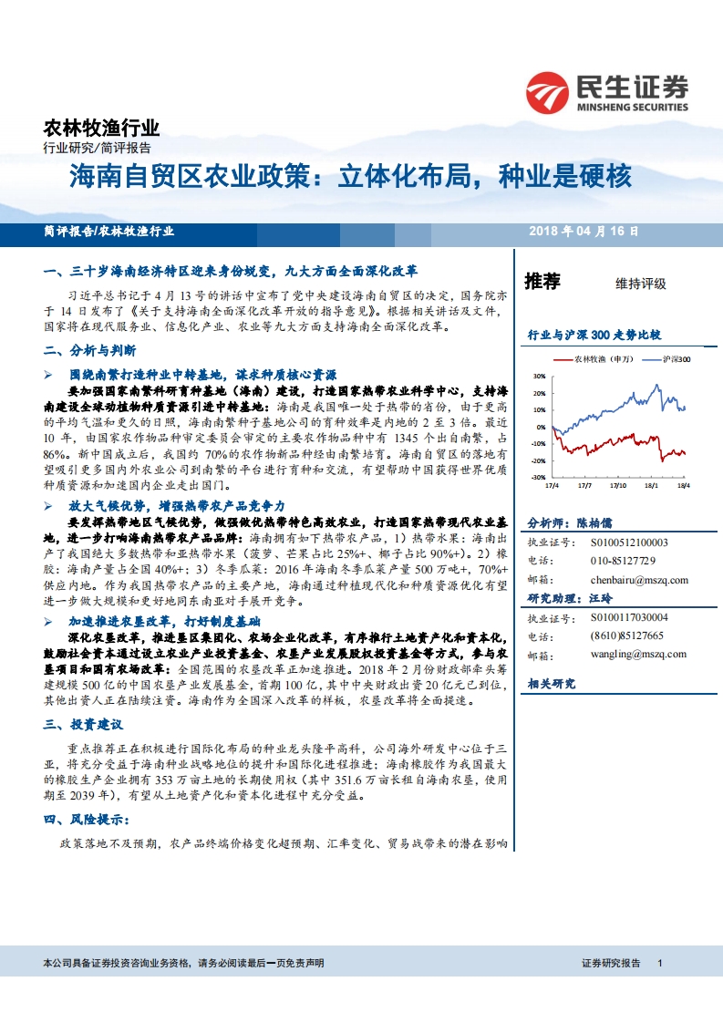 農(nóng)林牧漁行業(yè):海南自貿(mào)區(qū)農(nóng)業(yè)政策:立體化布局,種業(yè)是硬核
