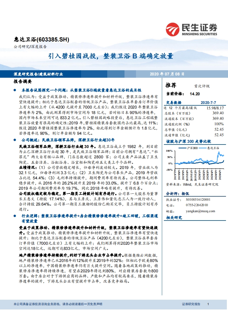 2020-07-08-民生證券-惠達(dá)衛(wèi)浴-引入碧桂園戰(zhàn)投,整裝衛(wèi)浴B端確定放量