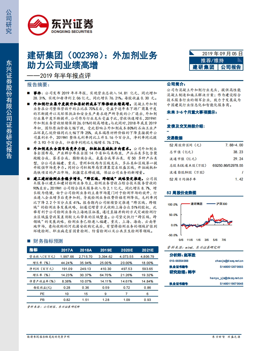 2019-09-06-東興證券-建研集團-2018年半年報點評:外加劑業(yè)務(wù)助力公司業(yè)績高增