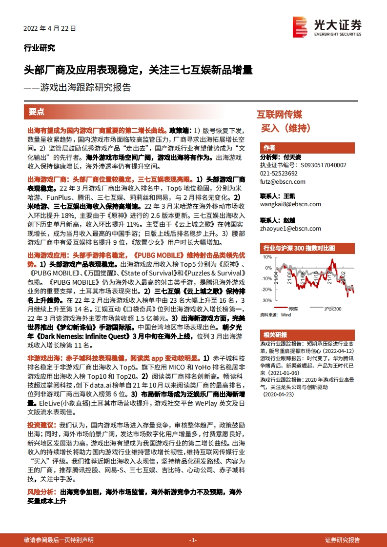 游戲出海跟蹤研究報告:頭部廠商及應(yīng)用表現(xiàn)穩(wěn)定,關(guān)注三七互娛新品增量