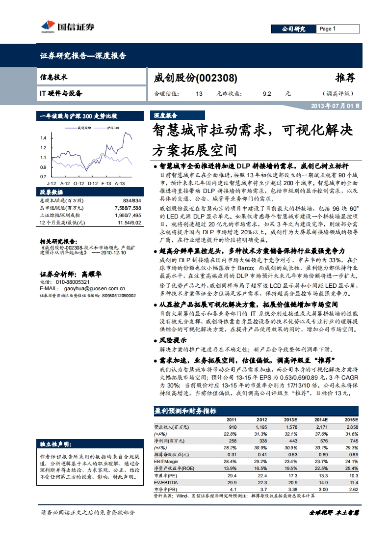 20130701-國信證券:威創(chuàng)股份-智慧城市拉動需求,可視化解決方案拓展空間-19頁