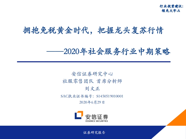 2020年社會服務(wù)行業(yè)中期策略:擁抱免稅黃金時代,把握龍頭復(fù)蘇行情