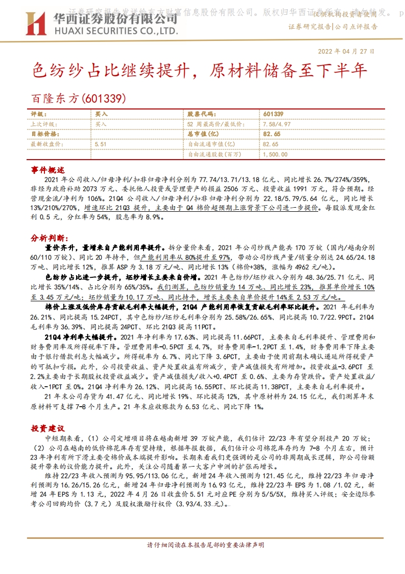 2022-04-27-華西證券-百隆東方-色紡紗占比繼續(xù)提升,原材料儲(chǔ)備至下半年