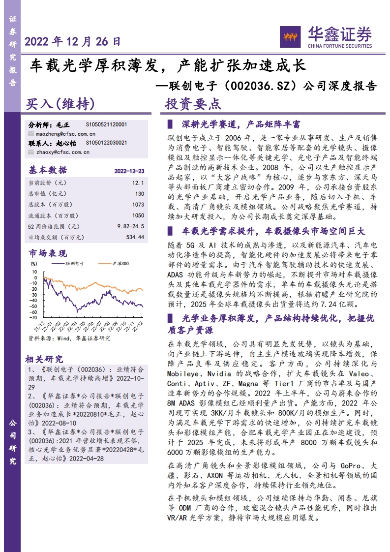 2022-12-26-華鑫證券-聯(lián)創(chuàng)電子-公司深度報(bào)告:車(chē)載光學(xué)厚積薄發(fā),產(chǎn)能擴(kuò)張加速成長(zhǎng)