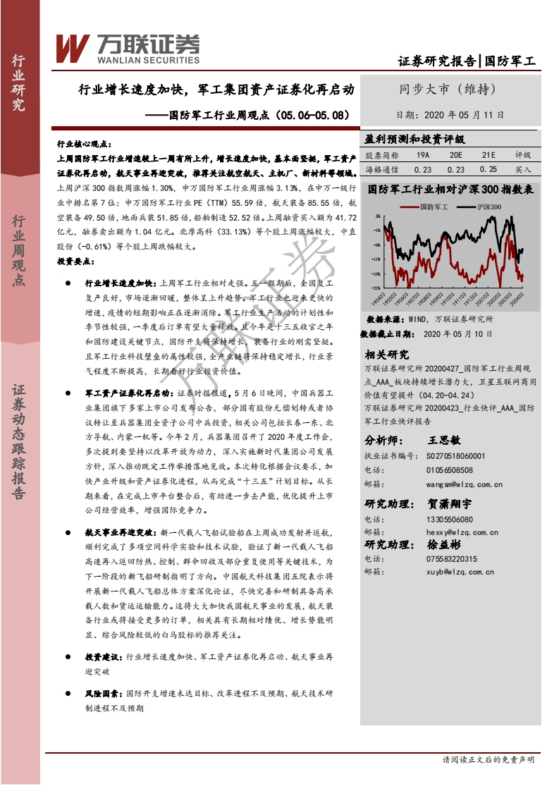 國防軍工行業(yè)周觀點:行業(yè)增長速度加快,軍工集團資產證券化再啟動