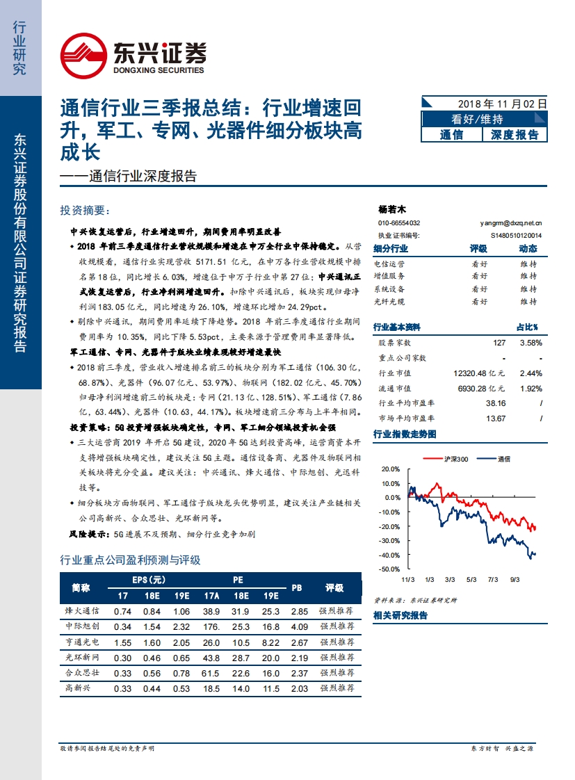 通信行業(yè)深度報告:通信行業(yè)三季報總結(jié)-行業(yè)增速回升,軍工、專網(wǎng)、光器件細(xì)分板塊高成長