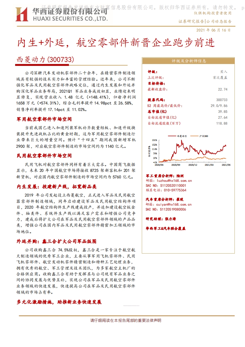 2021-06-17-華西證券-西菱動(dòng)力-內(nèi)生+外延,航空零部件新晉企業(yè)跑步前進(jìn)