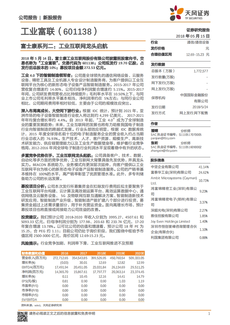 2018-05-16-天風(fēng)證券-工業(yè)富聯(lián)-富士康系列二:工業(yè)互聯(lián)網(wǎng)龍頭啟航