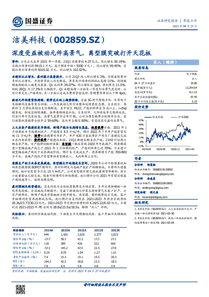2021-04-28-國盛證券-潔美科技-深度受益被動元件高景氣,離型膜突破打開天花板