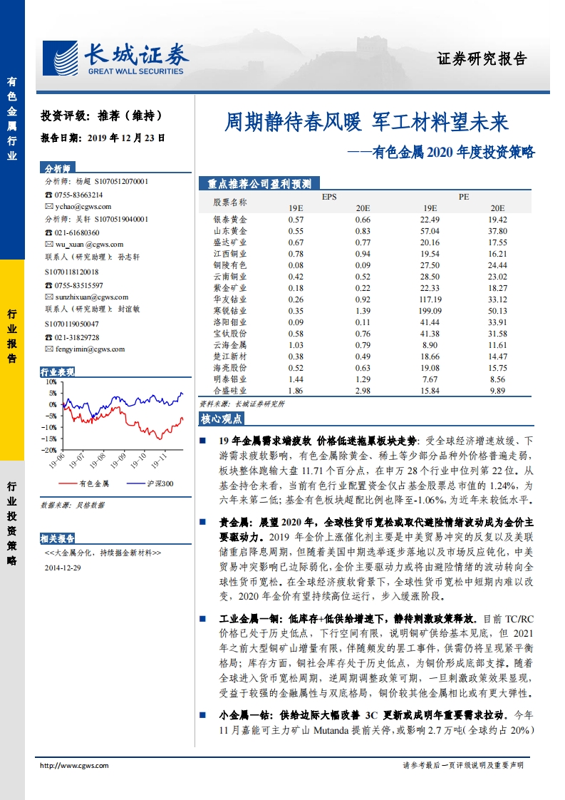 有色金屬2020年度投資策略:周期靜待春風(fēng)暖 軍工材料望未來