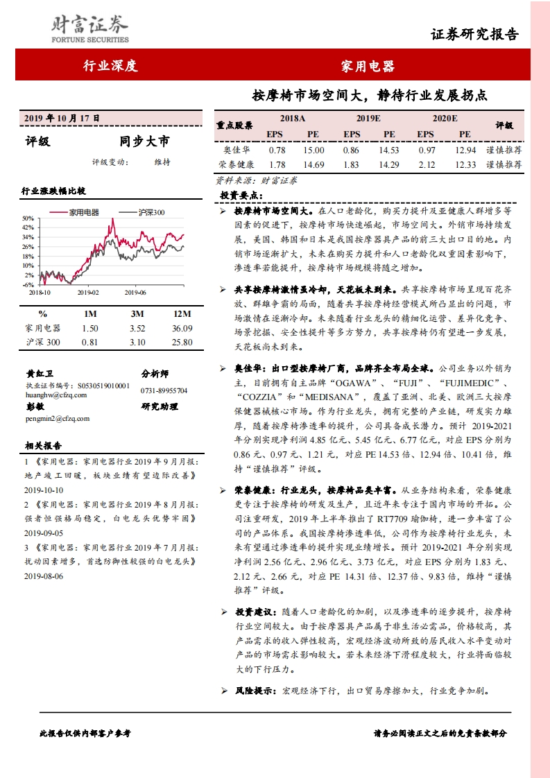 家用電器行業(yè)深度:按摩椅市場空間大,靜待行業(yè)發(fā)展拐點(diǎn)