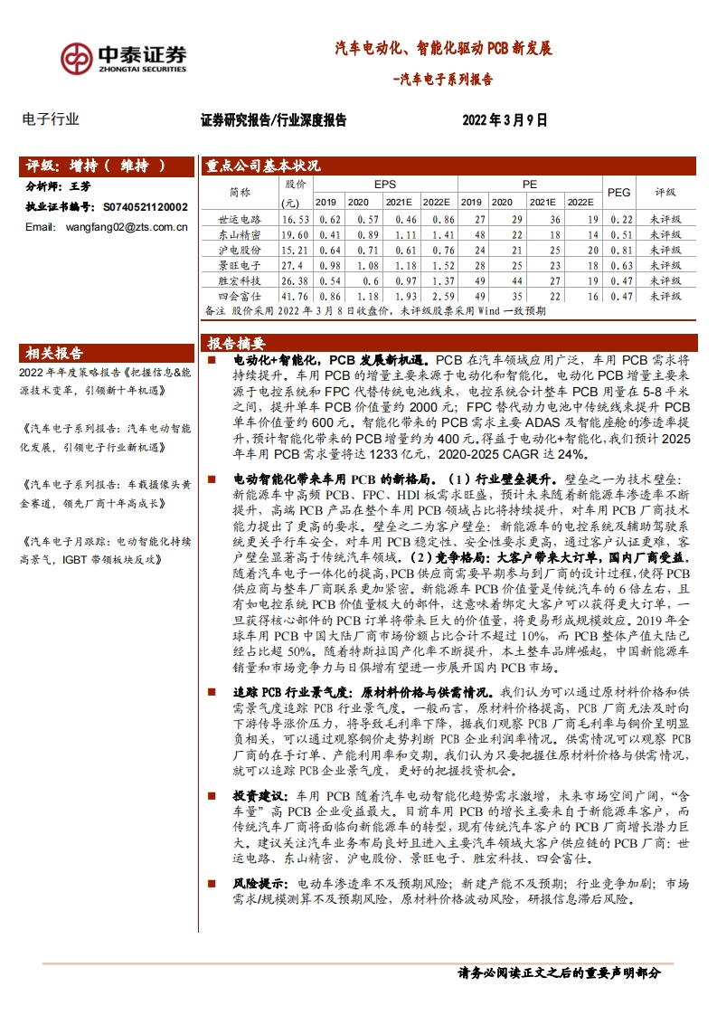 汽車電子系列報(bào)告:汽車電動(dòng)化、智能化驅(qū)動(dòng)PCB新發(fā)展