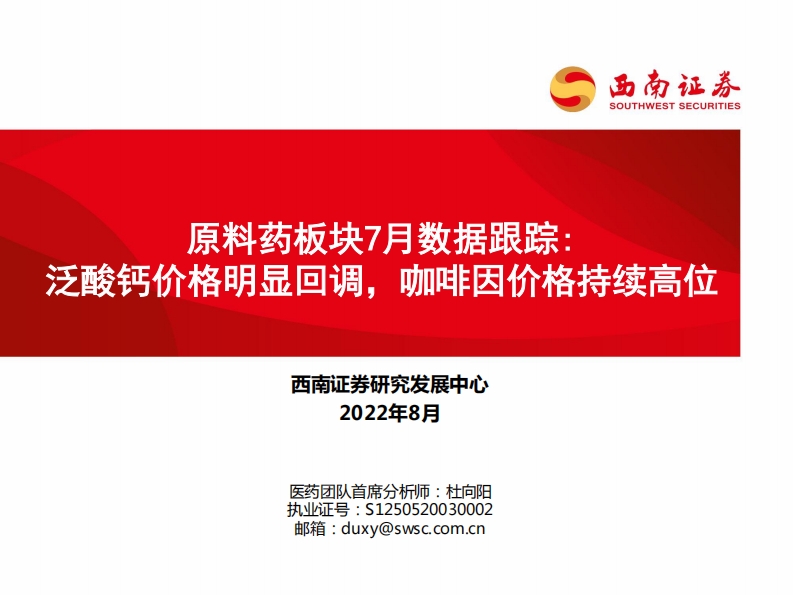 2022-08-25-西南證券--原料藥板塊7月數(shù)據(jù)跟蹤:泛酸鈣價格明顯回調(diào),咖啡因價格持續(xù)高位