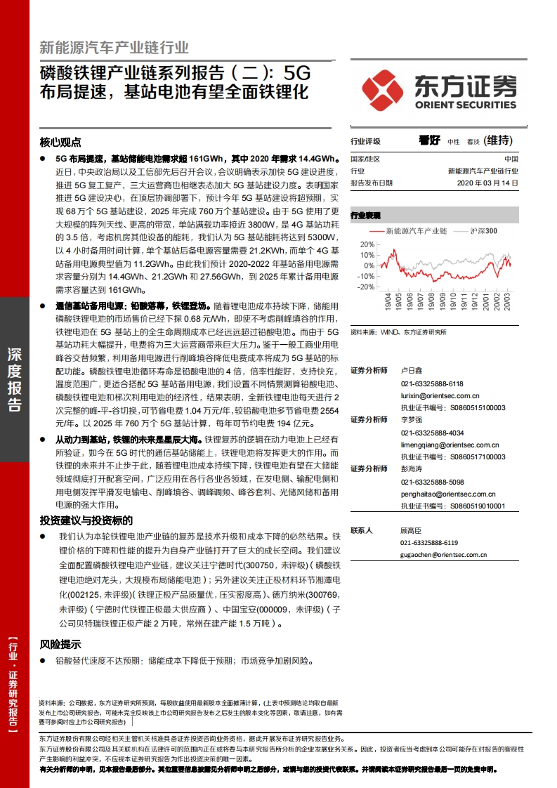 磷酸鐵鋰產(chǎn)業(yè)鏈系列報(bào)告(二):5G布局提速,基站電池有望全面鐵鋰化