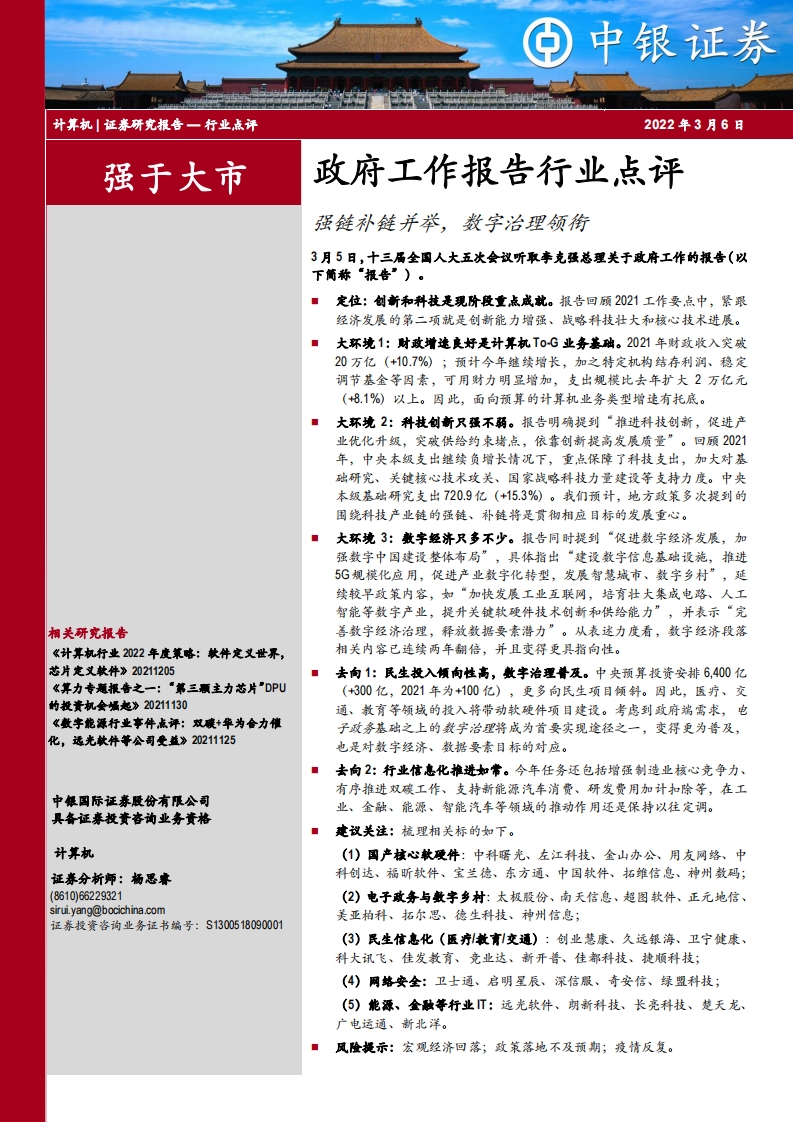 計算機:政府工作報告行業(yè)點評:強鏈補鏈并舉,數(shù)字治理領銜