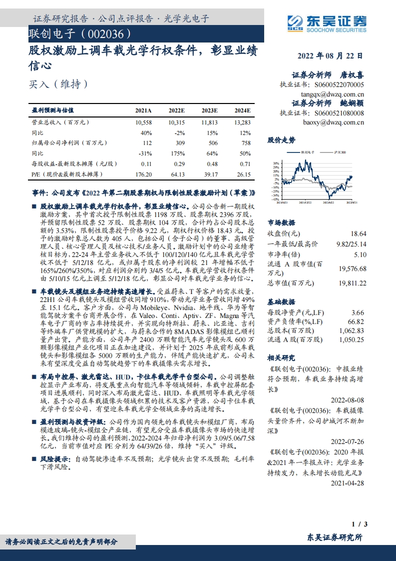 2022-08-23-東吳證券-聯(lián)創(chuàng)電子-股權(quán)激勵上調(diào)車載光學(xué)行權(quán)條件,彰顯業(yè)績信心