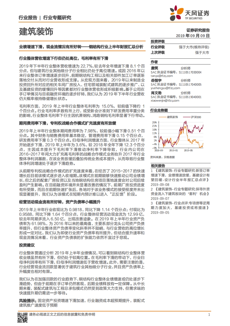 建筑裝飾行業(yè)專題研究:鋼結(jié)構(gòu)行業(yè)上半年財(cái)報(bào)匯總分析-業(yè)績增速下滑,現(xiàn)金流情況有所好轉(zhuǎn)