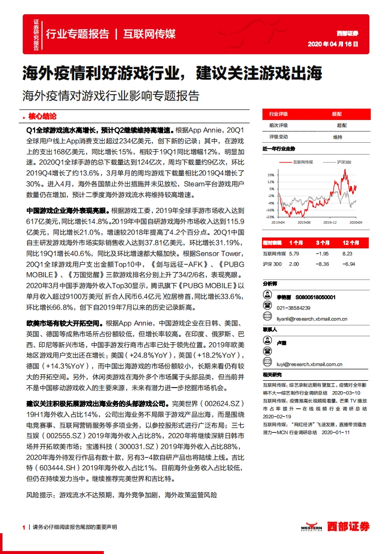 海外疫情對游戲行業(yè)影響專題報告:海外疫情利好游戲行業(yè),建議關(guān)注游戲出海