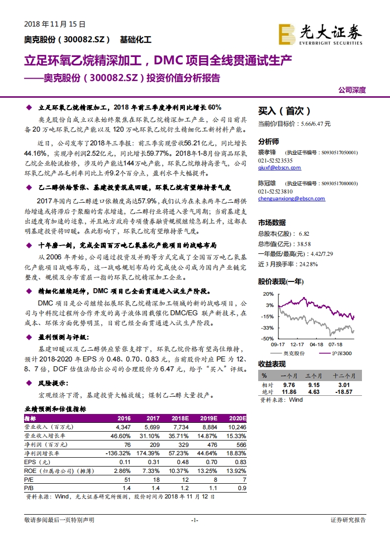 2018-11-15-光大證券-奧克股份-投資價(jià)值分析報(bào)告:立足環(huán)氧乙烷精深加工,DMC項(xiàng)目全線貫通試生產(chǎn)