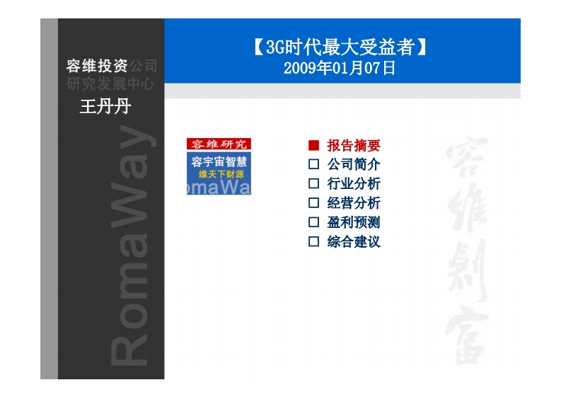 20090107-中國聯(lián)通:-容維投資-中興通訊:3G時(shí)代最大受益者-12頁