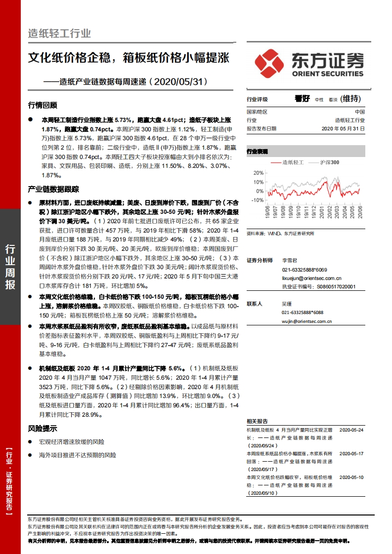 造紙產(chǎn)業(yè)鏈數(shù)據(jù)每周速遞:文化紙價(jià)格企穩(wěn),箱板紙價(jià)格小幅提漲