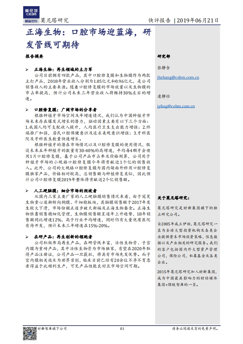 2019-06-24-莫尼塔投資-正海生物-正海生物:口腔市場(chǎng)迎藍(lán)海,研發(fā)管線可期待