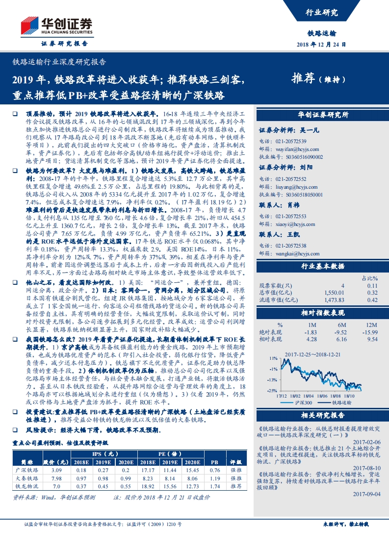 鐵路運(yùn)輸行業(yè)深度研究報(bào)告:2019年,鐵路改革將進(jìn)入收獲年;推薦鐵路三劍客,重點(diǎn)推薦低PB+改革受益路徑清晰的廣深鐵路