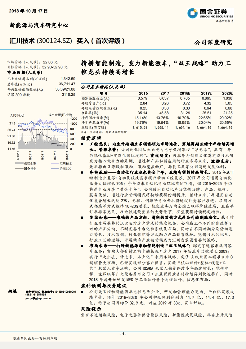 2018-10-18-國金證券-匯川技術(shù)-精耕智能制造,發(fā)力新能源車,“雙王戰(zhàn)略”助力工控龍頭持續(xù)高增長