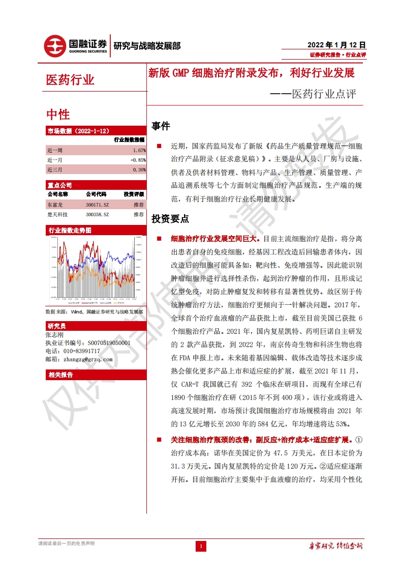醫(yī)藥行業(yè)點評:新版GMP細胞治療附錄發(fā)布,利好行業(yè)發(fā)展