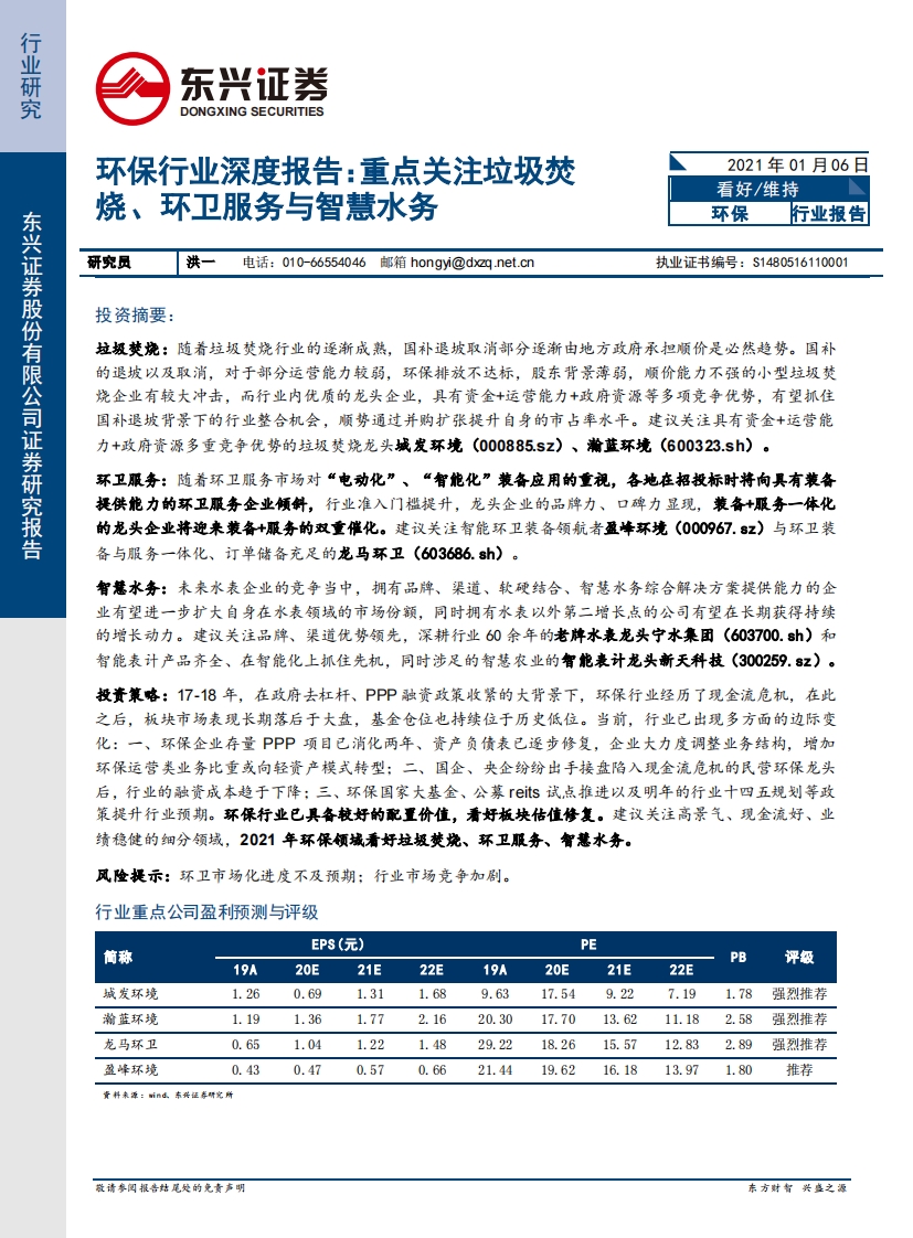 環(huán)保行業(yè)深度報(bào)告:重點(diǎn)關(guān)注垃圾焚燒、環(huán)衛(wèi)服務(wù)與智慧水務(wù)