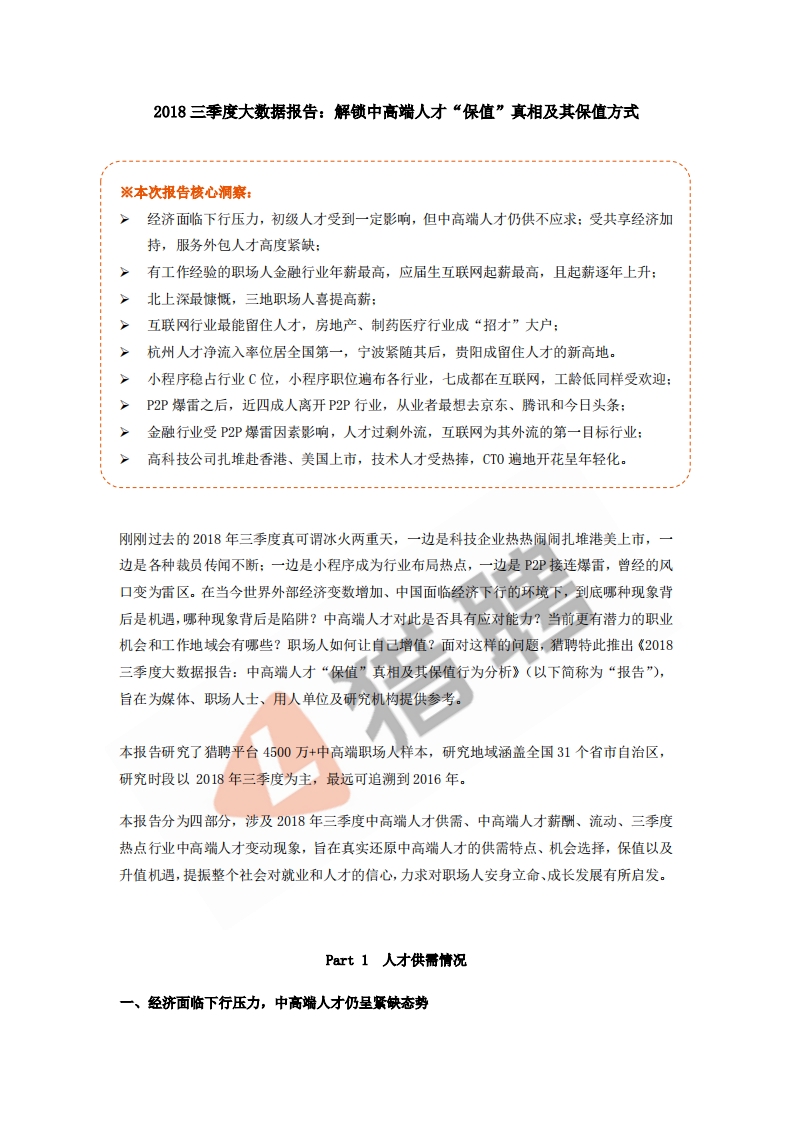 2018三季度大數(shù)據(jù)報(bào)告:解鎖中高端人才“保值”真相及其保值方式