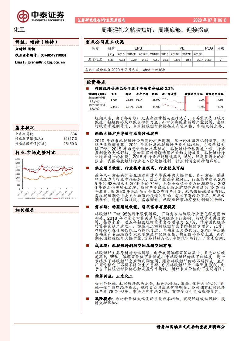 化工:周期巡禮之粘膠短纖:周期底部,迎接拐點