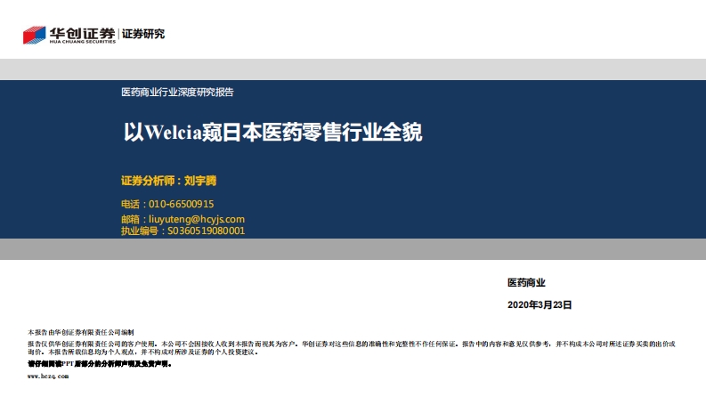 醫(yī)藥商業(yè)行業(yè)深度研究報(bào)告:以Welcia窺日本醫(yī)藥零售行業(yè)全貌
