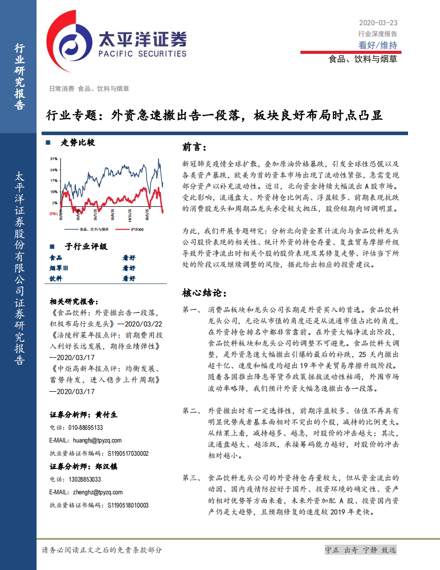 食品、飲料與煙草行業(yè)專題:外資急速撤出告一段落,板塊良好布局時點凸顯