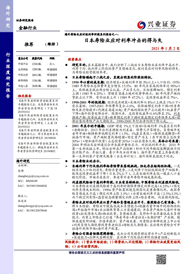 海外壽險(xiǎn)應(yīng)對低利率環(huán)境系列報(bào)告之一:日本壽險(xiǎn)業(yè)應(yīng)對利率沖擊的得與失