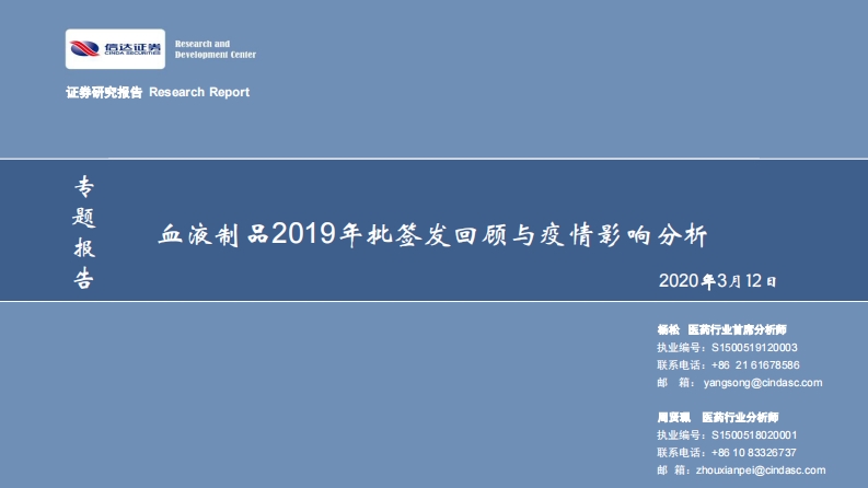 血液制品2019年批簽發(fā)回顧與疫情影響分析