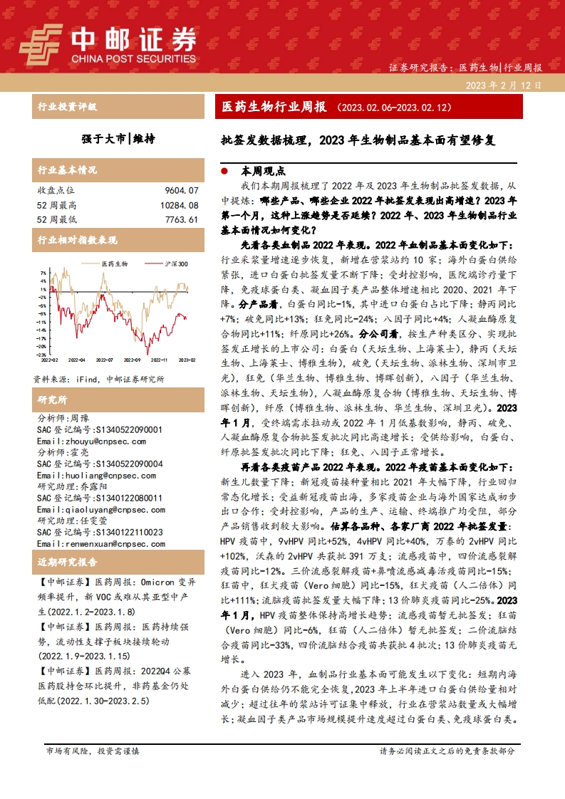 2023-02-12-中郵證券--醫(yī)藥生物行業(yè)周報(bào):批簽發(fā)數(shù)據(jù)梳理,2023年生物制品基本面有望修復(fù)