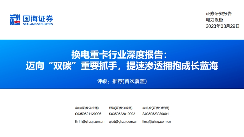 2023-03-29-國海證券--換電重卡行業(yè)深度報告:邁向“雙碳”重要抓手,提速滲透擁抱成長藍(lán)海