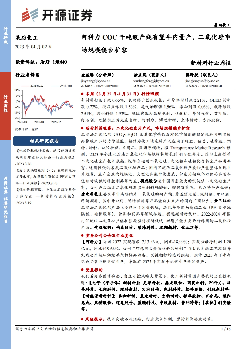 2023-04-04-開源證券--新材料行業(yè)周報:阿科力COC千噸級產(chǎn)線有望年內(nèi)量產(chǎn),二氧化硅市場規(guī)模穩(wěn)步擴(kuò)容