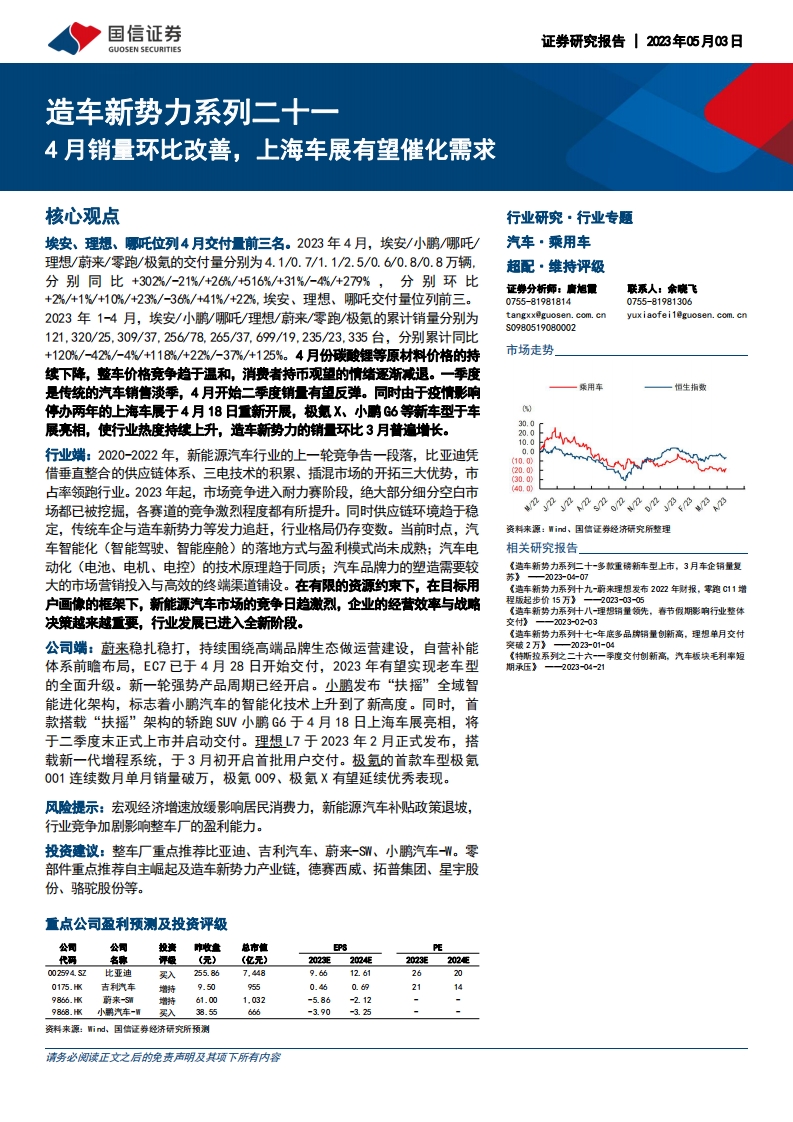 2023-05-05-國(guó)信證券--造車新勢(shì)力系列二十一:4月銷量環(huán)比改善,上海車展有望催化需求