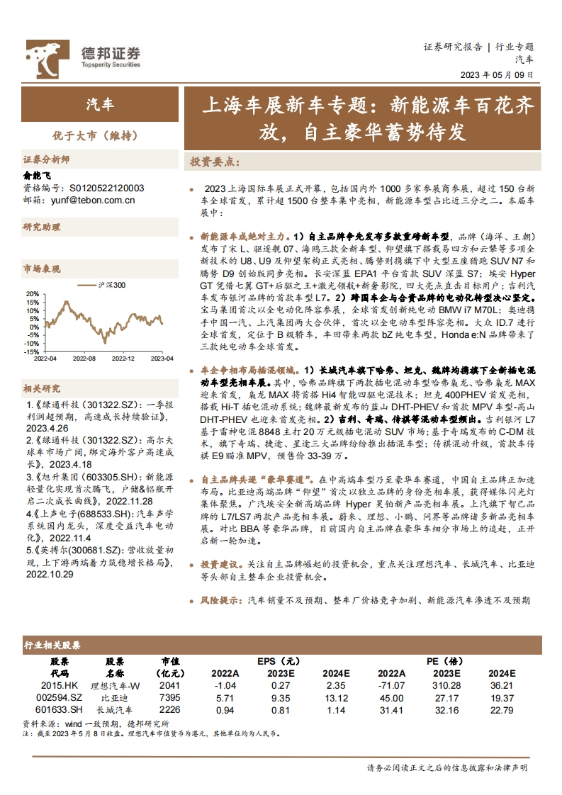 2023-05-09-德邦證券--汽車行業(yè)專題:上海車展新車專題:新能源車百花齊放,自主豪華蓄勢待發(fā)