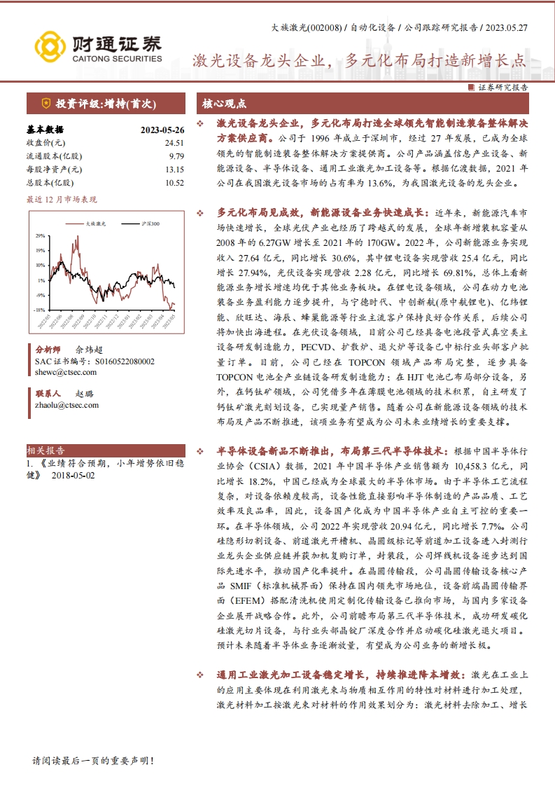 2023-05-28-財(cái)通證券-大族激光-激光設(shè)備龍頭企業(yè),多元化布局打造新增長(zhǎng)點(diǎn)