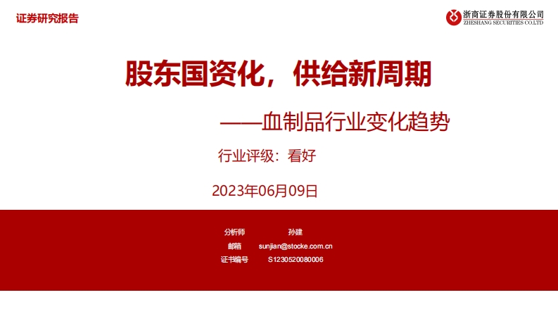 2023-06-09-浙商證券--血制品行業(yè)變化趨勢:股東國資化,供給新周期