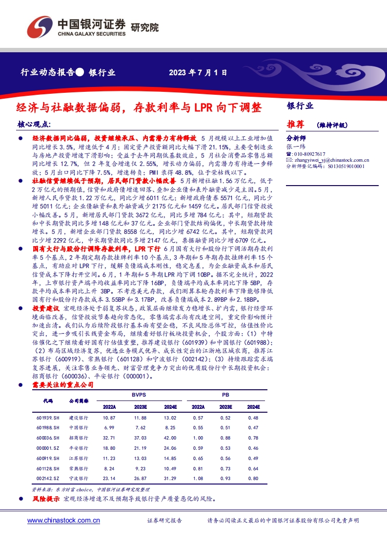 2023-07-02-中國銀河--銀行業(yè)行業(yè)動態(tài)報告:經(jīng)濟(jì)與社融數(shù)據(jù)偏弱,存款利率與LPR向下調(diào)整