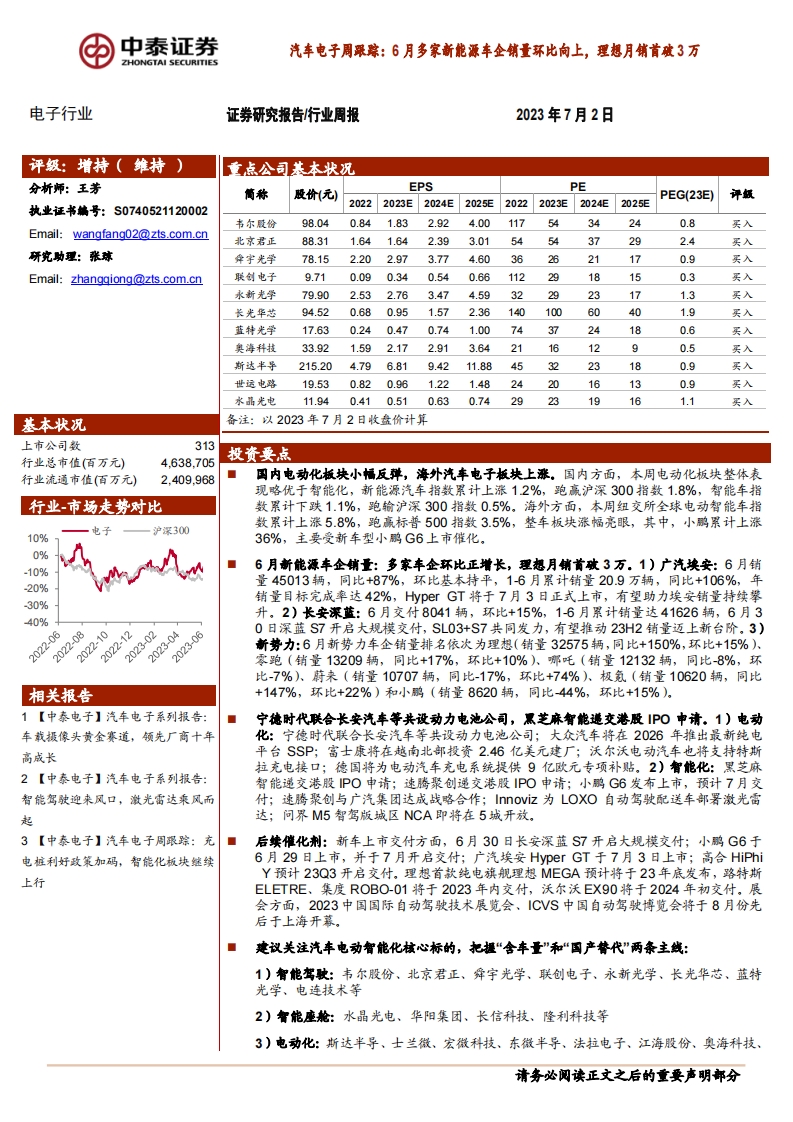 2023-07-03-中泰證券-汽車電子周跟蹤:6月多家新能源車企銷量環(huán)比向上,理想月銷首破3萬