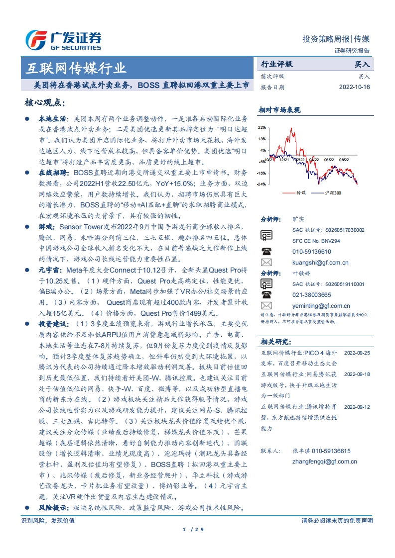 廣發(fā)證券-互聯(lián)網(wǎng)傳媒行業(yè):美團將在香港試點外賣業(yè)務(wù),BOSS直聘擬回港雙重主要上市-221016