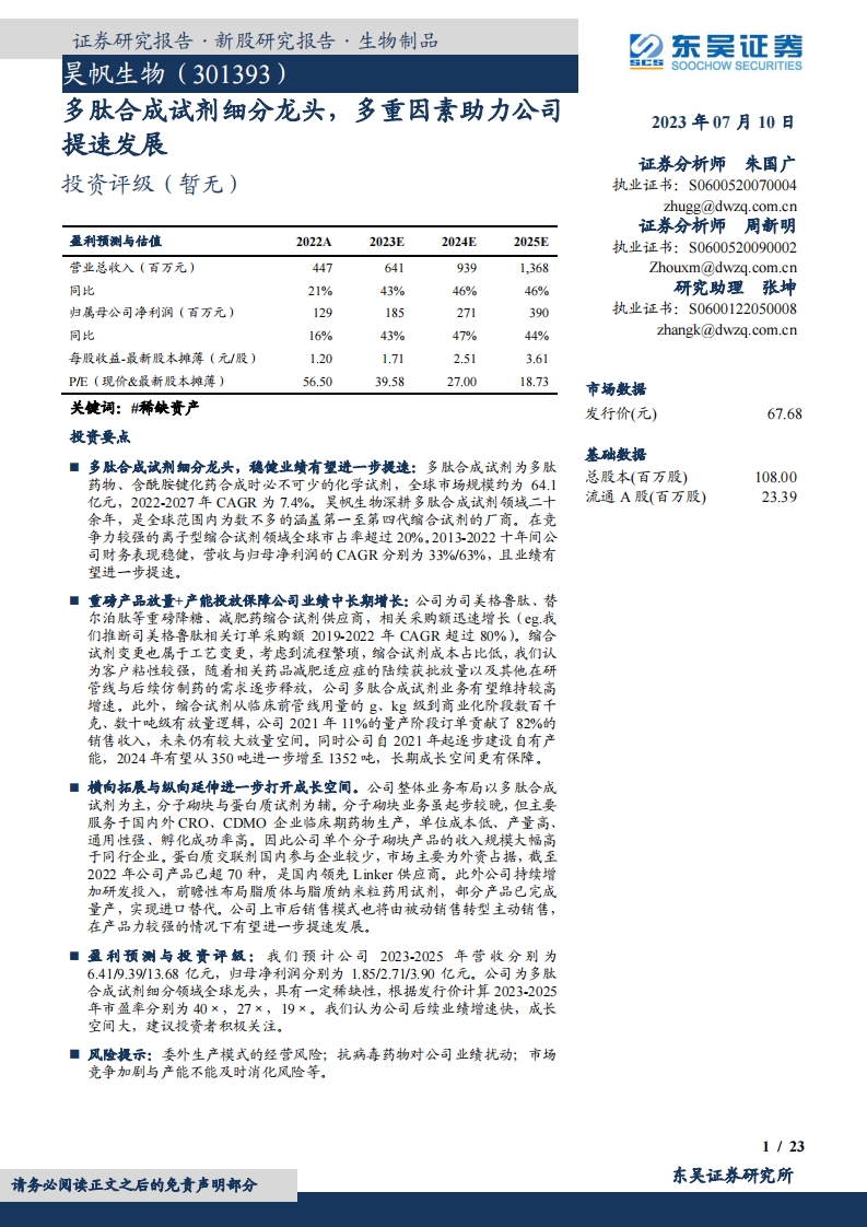 2023-07-10-東吳證券-昊帆生物-多肽合成試劑細分龍頭,多重因素助力公司提速發(fā)展