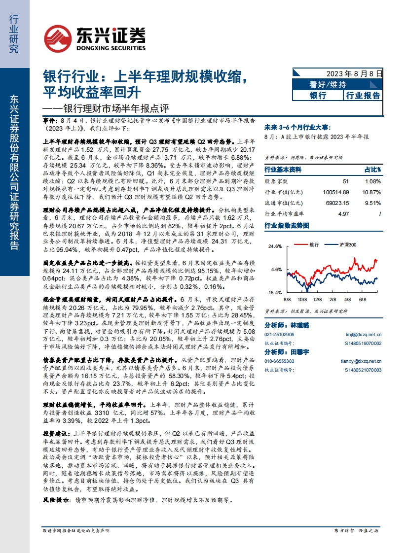 2023-08-08-東興證券-銀行理財(cái)市場(chǎng)半年報(bào)點(diǎn)評(píng):上半年理財(cái)規(guī)模收縮,平均收益率回升