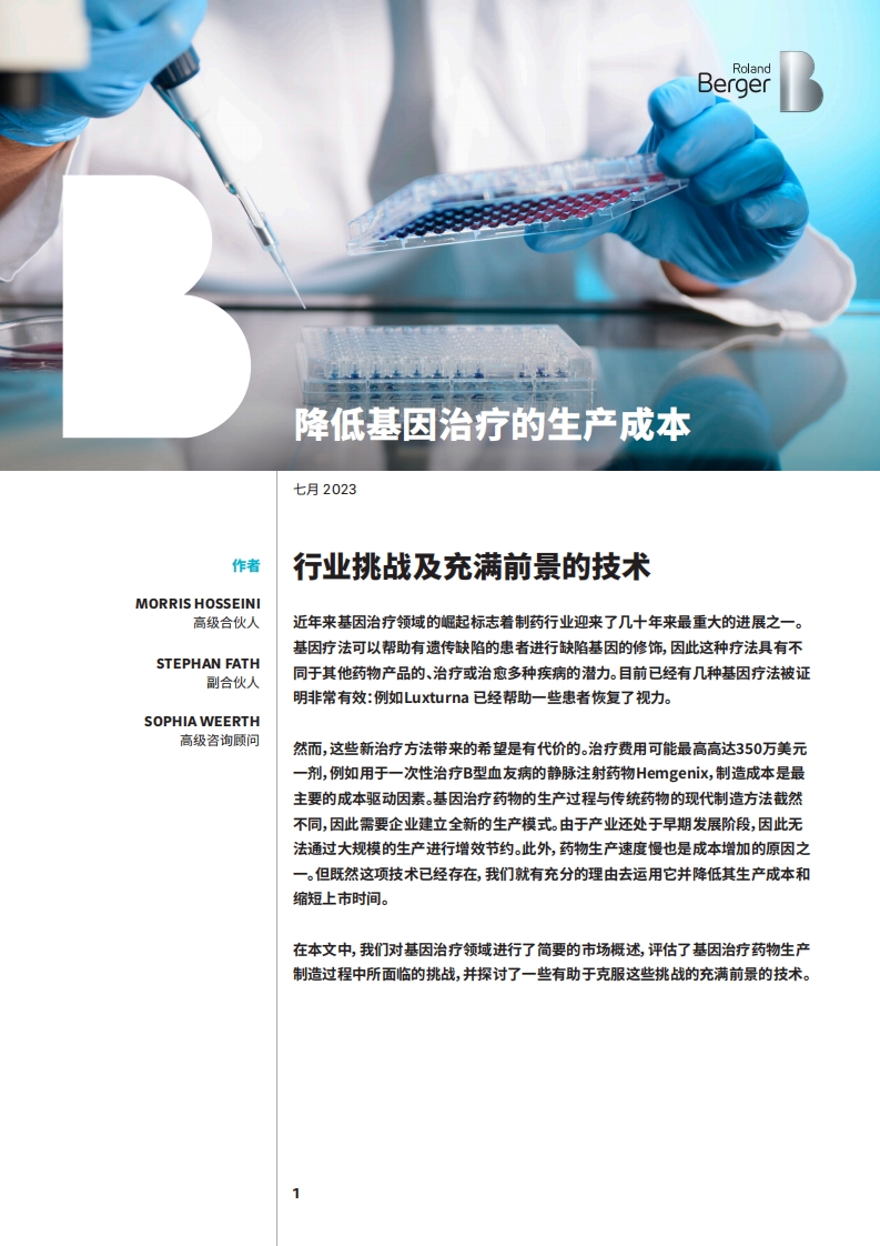 羅蘭貝格:降低基因治療的生產(chǎn)成本