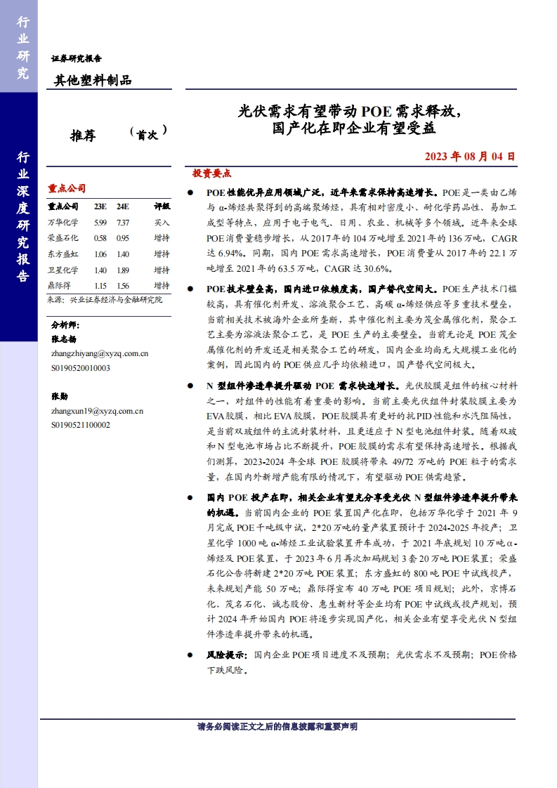 化工行業(yè)深度研究報(bào)告:光伏需求有望帶動(dòng)POE需求釋放,國產(chǎn)化在即企業(yè)有望受益